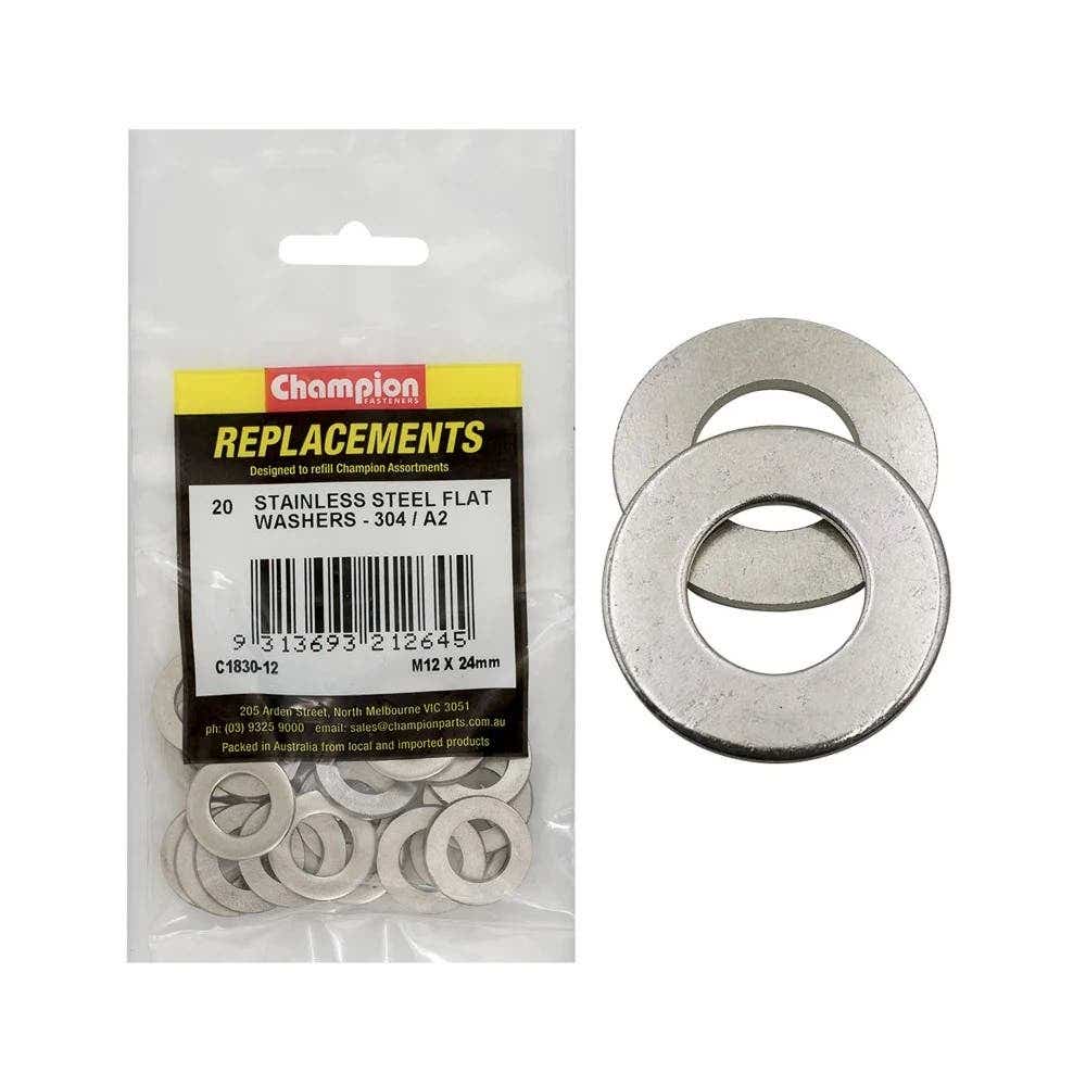 Grab Kit Refill - Washer Flat 304 Stainless Steel 12 x 24mm Pk 20