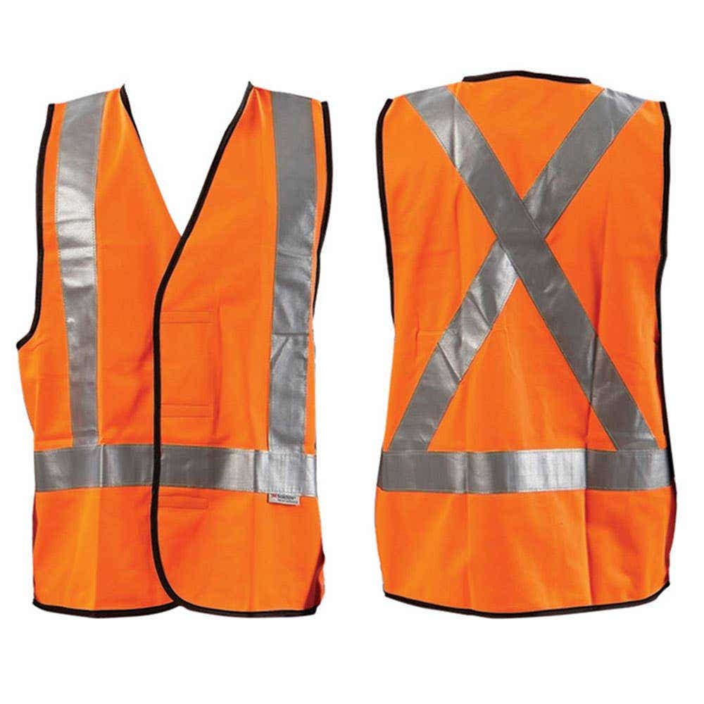 Vest Safety 3XL Orange 190gsm Cotton 3M Tape X Back Hi Vis D/N Zip