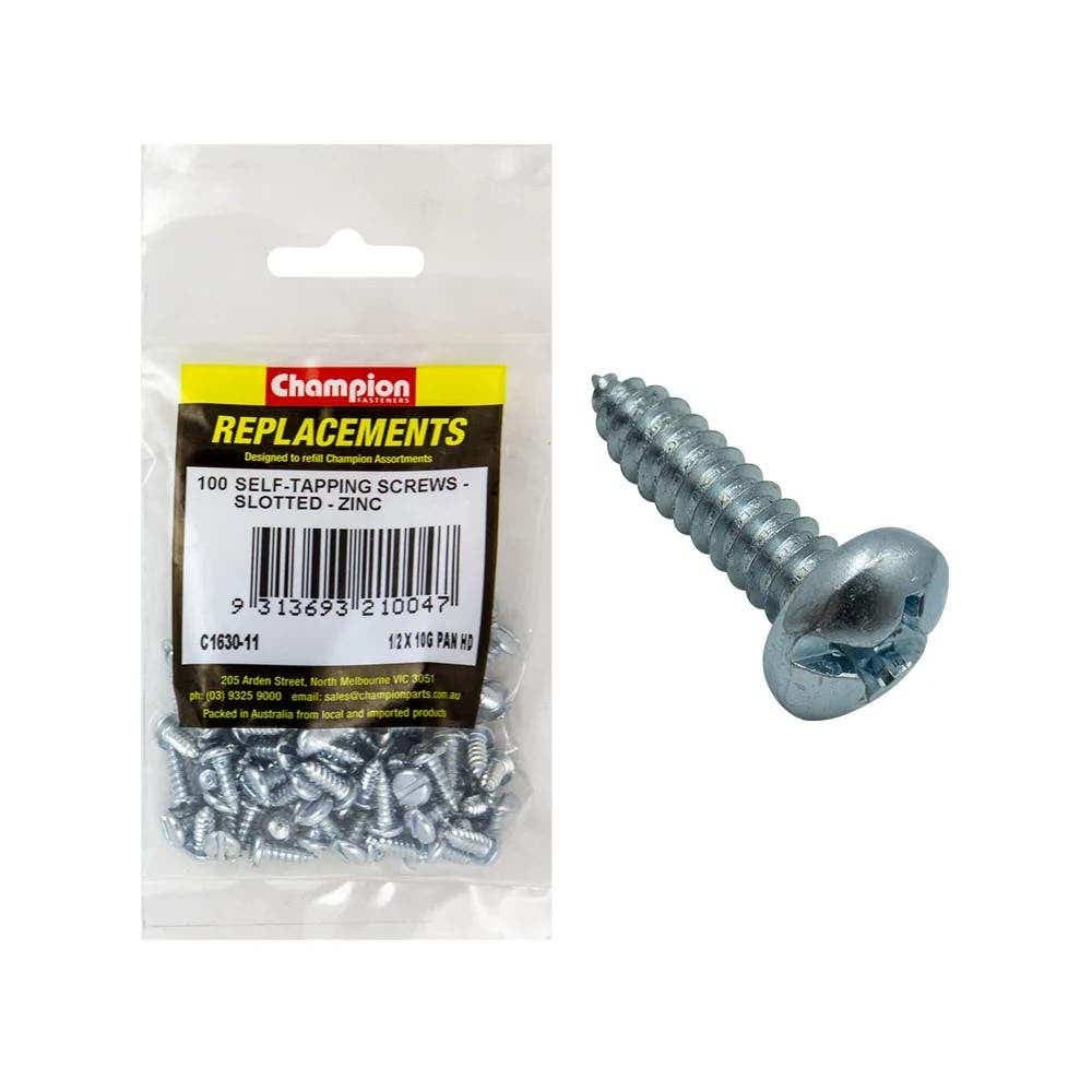 Grab Kit Refill - Screw Self Tapping Pan Head Slotted 10G x 1/2'' Pk 100