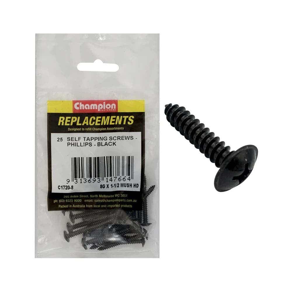 Grab Kit Refill - Screw Self Tapping Mushroom Head Black 8G x 1-1/2''
