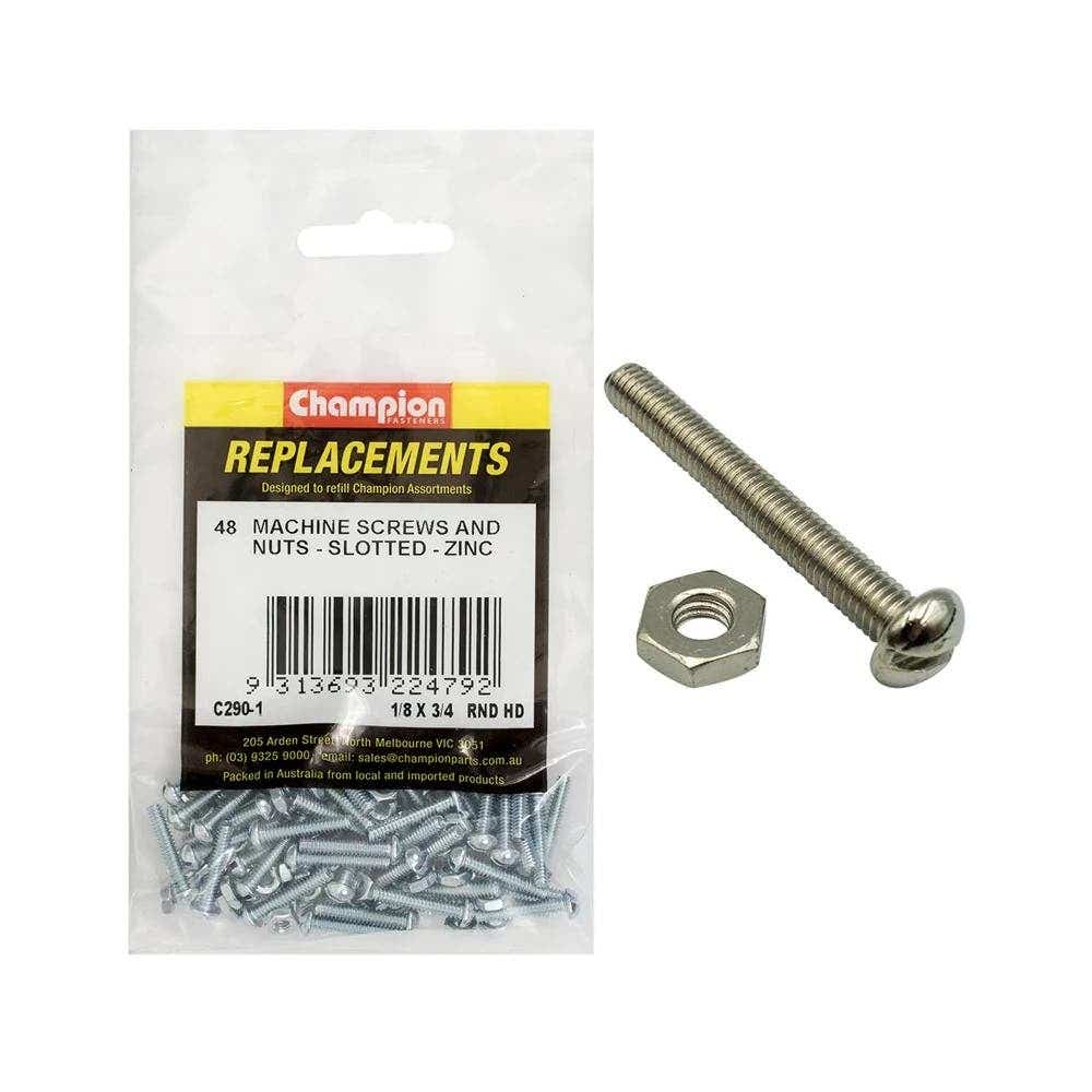 Grab Kit Refill - Screw Machine Round Slot Zinc BSW 1/8 x 1-1/4'' Pk 48