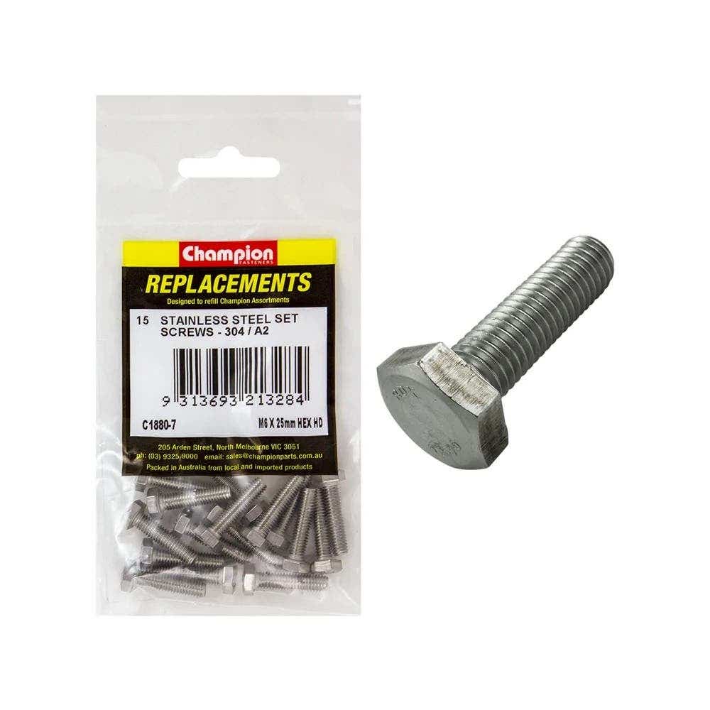 Grab Kit Refill - Screw Set Hex Head 304 Stainless Steel 6 x 25mm Pk 15