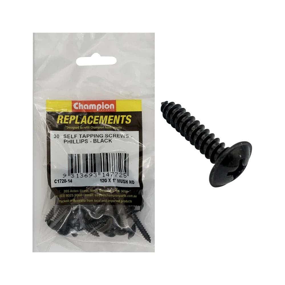 Grab Kit Refill - Screw Self Tapping Mushroom Head Black 12G x 1''