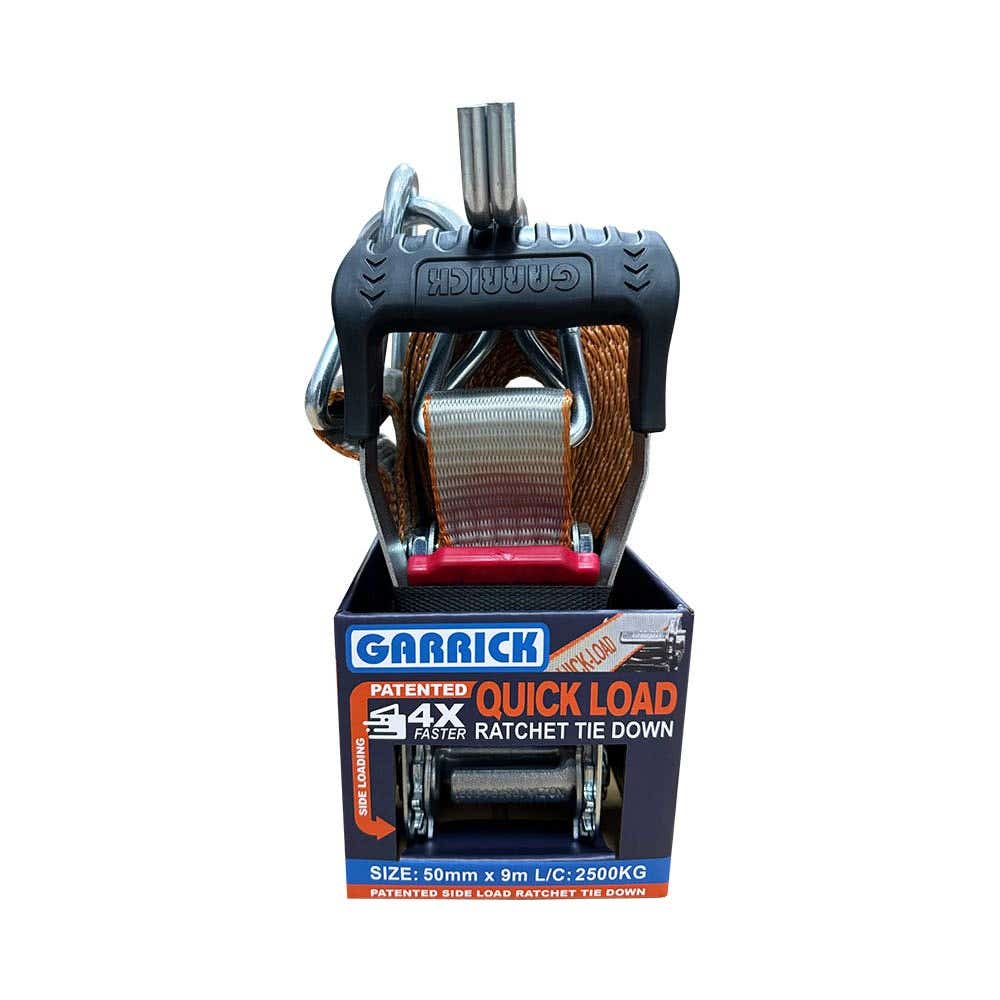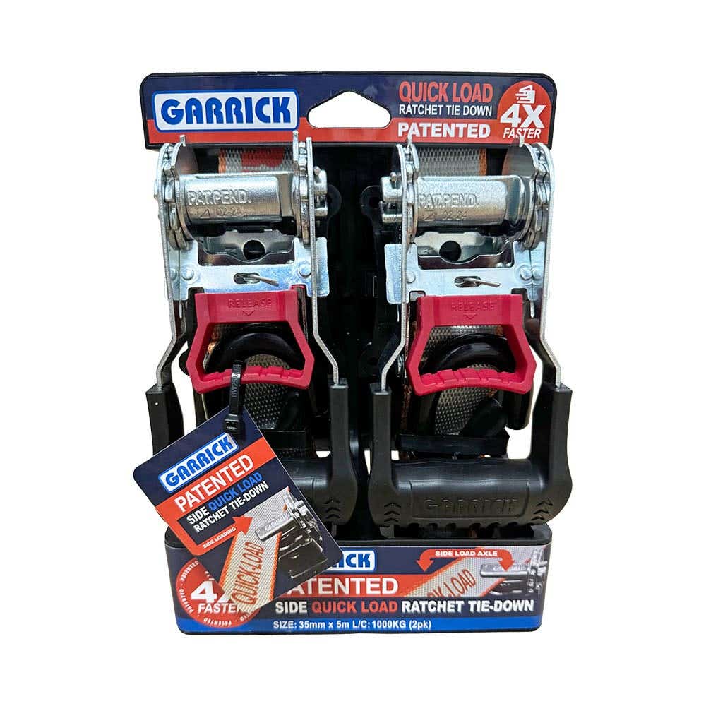 Strap Tie Down Ratchet + Hooks Retractable 3.3m 350kg Pk 2 Quickloader