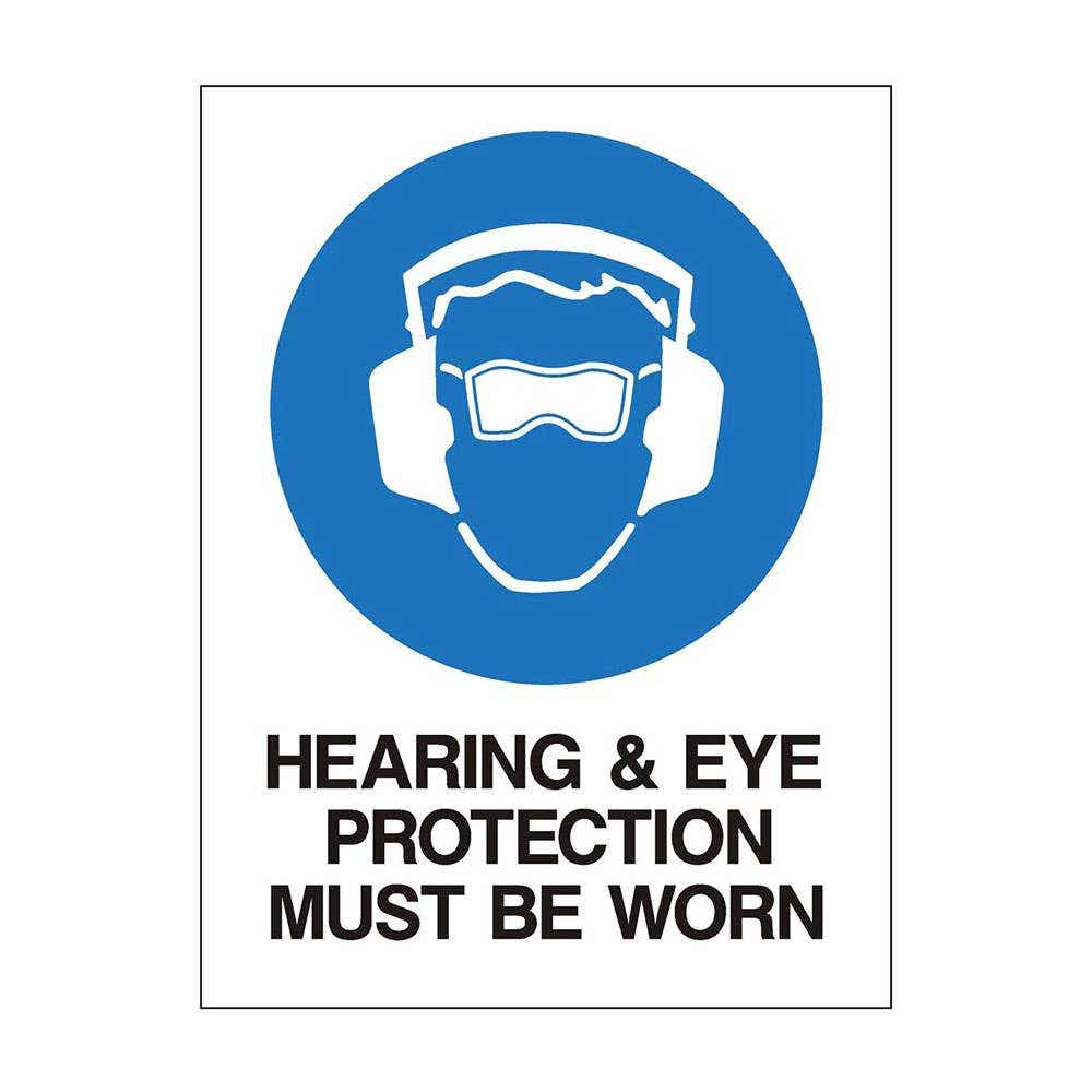 Sign HEARING AND EYE PROTECTION MUST BE WORN WHEN OPER.. 600 x 450mm Poly