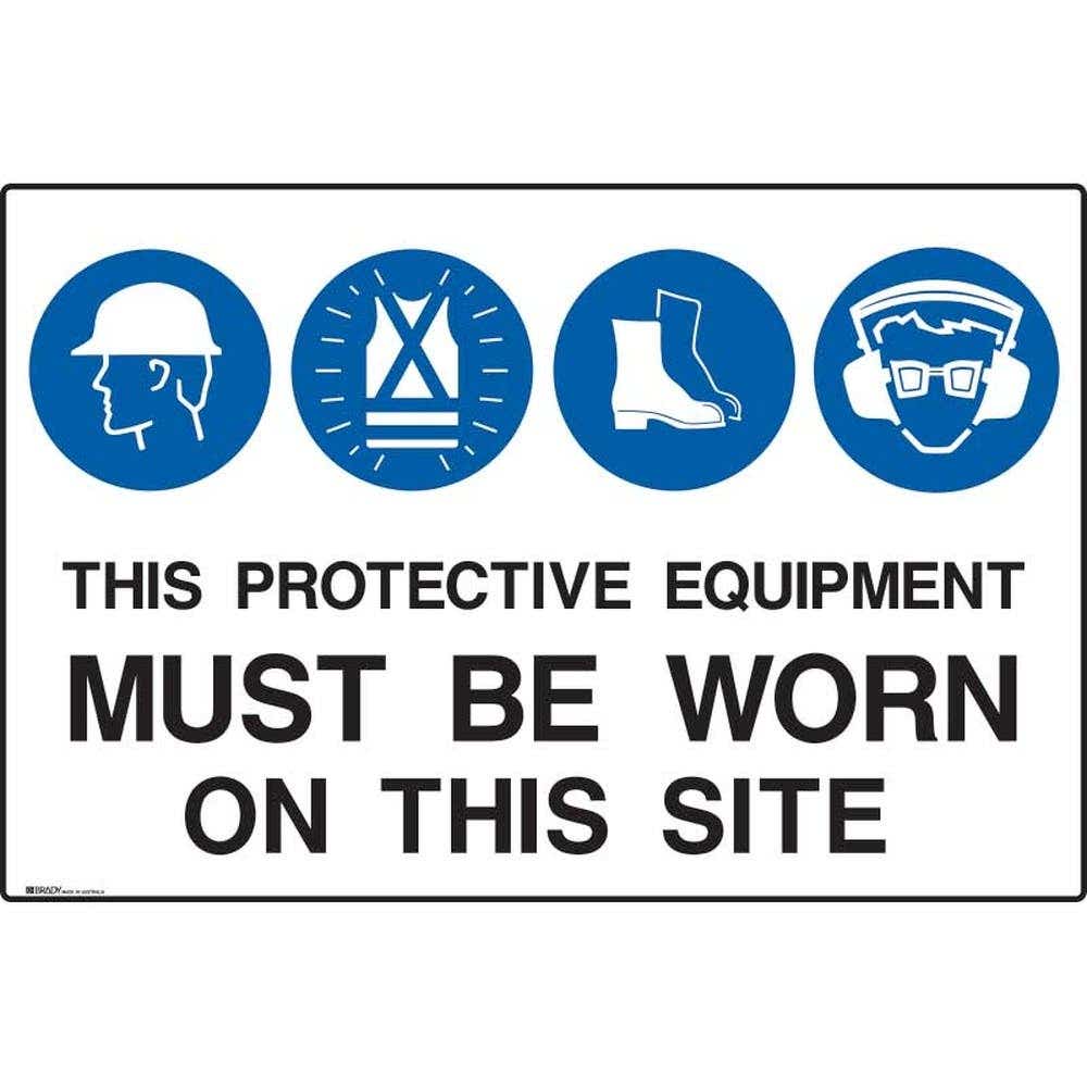 Sign HELMET VEST FOOT EAR EYE PROTECTION MUST BE WORN 900 X 600mm Poly