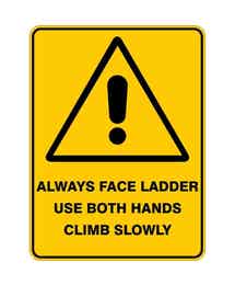 Sign WARNING ALWAYS FACE LADDER BOTH HANDS CLIMB SLOWLY 600 x 450mm Poly