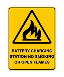 Sign WARNING BATTERY CHARGE STATION NO SMOKING/OPEN FLAMES 300x225mm Poly