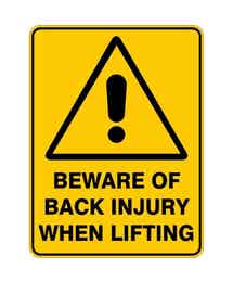 Sign WARNING BEWARE OF BACK INJURY WHEN LIFTING 300 x 225mm Flute