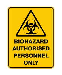 Sign WARNING BIOHAZARD AUTHORISED PERSONNEL ONLY 900 x 600mm Metal