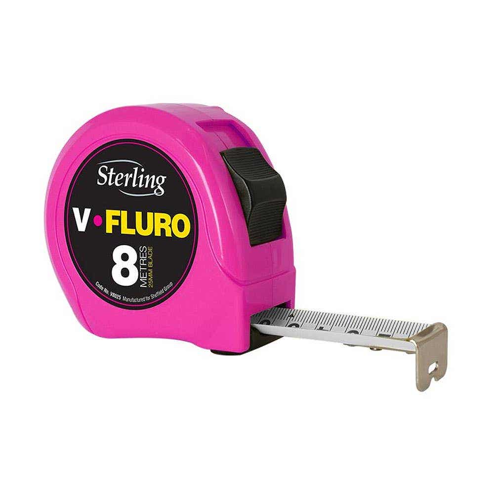 V-Force Metric Measuring Tape Fluoro Pink 8m x 25mm