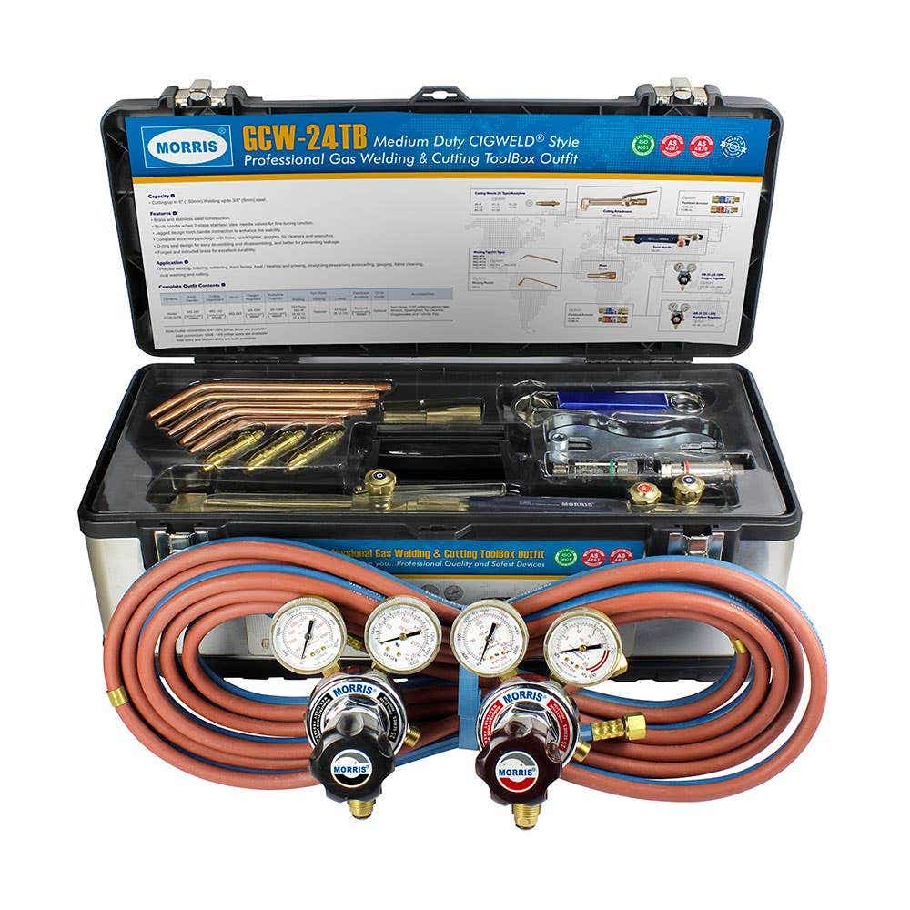 These sets typically include components such as a gas torch, regulators, hoses, and gas cylinders containing fuel gases like acetylene and oxygen. Depending on your welding needs, ATOM has a high-quality welding and cutting set to suit your specifications. Shop oxy acetylene gas cutting and welding kits by leading brands such as Cigweld, Harris and Morris online below.